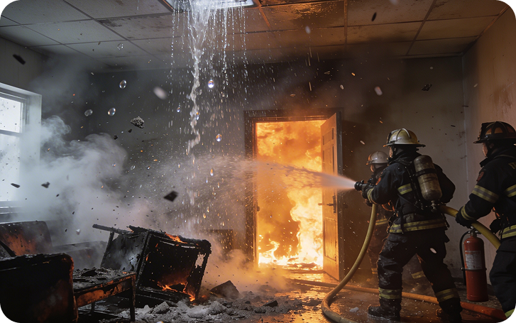 Our system can be activated manually or remotely. Once triggered, high-pressure pumps start delivering water through a strategically designed pipeline network.
